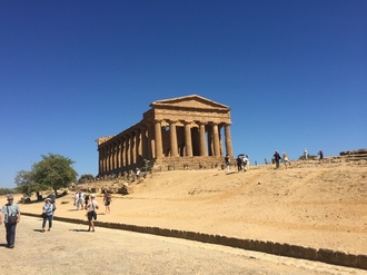 カルタジローネから約118kmに位置する世界遺産のアグリジェント遺跡観光へ(1時間)。しかし、紀元前の頃、器材もないのにこのような神殿を建てることができたものだと感心するばかり。そこには多くの奴隷の力があったことは言うまでもないが、、、。