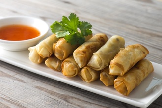 揚げ春巻きのようなお料理で、エビ、タケノコ、タマネギ、ニンジンから作った具材が詰まっています。