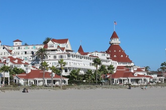 赤いとんがり屋根が目印の老舗ホテル・デル・コロナドはエジソンの電球を世界で初めて使用したホテルとして有名です。また、マリリン・モンロー主演の映画『お熱いのがお好き』のロケ地としても知られます。ホテル前には全米のベストビーチのひとつに数えられる素敵なビーチもあります。