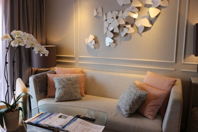 壁面の装飾が印象的なシーブリーズのお部屋。柔らかな色調のインテリアが上品でとてもリラックスできる雰囲気です。