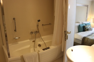 ちなみに先にご紹介したシーブリーズのお部屋のみ、バスタブが設置されていません。アメリカ人のお客様のリクエストでバスタブよりもお部屋の広さを優先したとのことです。バスタブ重視の方はご注意ください。