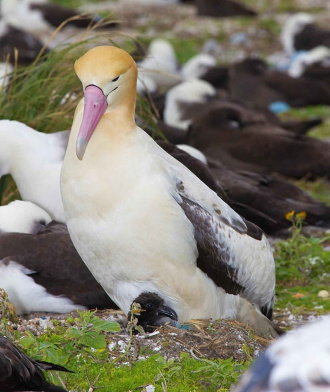 第二次世界大戦後、絶滅寸前だったアホウドリの保護活動が開始され、昭和40年(1965)の伊豆鳥島測候所(後の気象観測所)閉鎖により無人島となりました。現在、順調に繁殖しているようですが島には研究者や調査員以外は上陸することができません。クルーズ船が伊豆鳥島に接近する航路があれば、船上よりアホウドリの観察をされてはいかがでしょうか。
