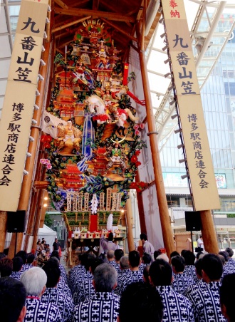 祭礼は7月1日~15日で、例年1日から「飾り山笠」が展示されるのですが、今年は6月24日から博多で行われた「ライオンズ国際大会」にあわせて、例年より早く「飾り山笠」が展示されています。