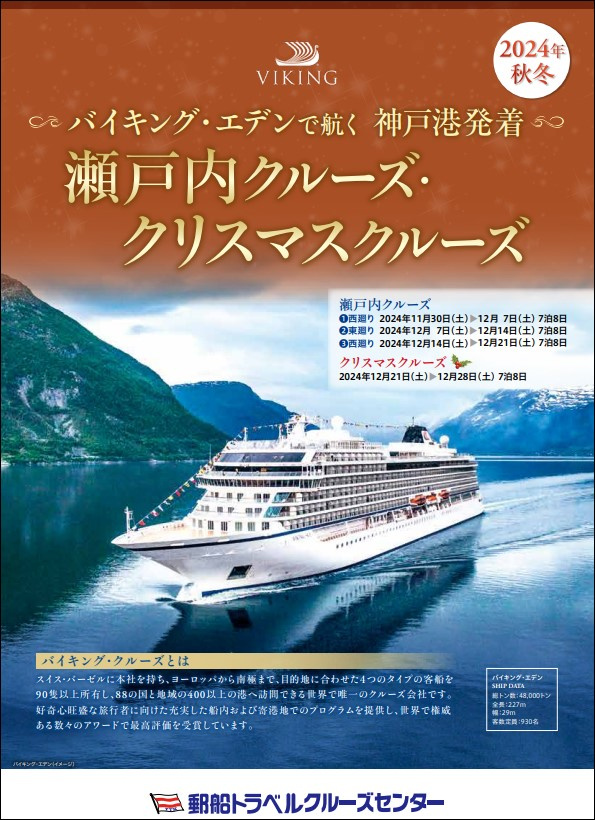 バイキング・クルーズは11月から12月にかけて神戸発着のクルーズを運航します。日本初就航です!