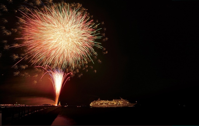 クルーズでは、にっぽん丸が館山花火クルーズを運航します。