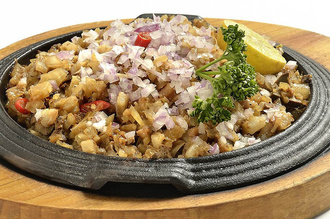 豚の頰肉や耳などあらゆる部分を細かく刻み、ガーリックやオニオン、唐辛子などを混ぜて炒め醤油やビネガーで味付けしたもので、白いご飯やビールとの相性が抜群です。