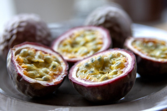 皆さんは生のパッションフルーツを食べたことはありますか? かなり前のことですが、クリスタル・シンフォニーの添乗で南アフリカのケープタウンを訪れた際、ホテルの朝食で頂いたフレッシュジュースがパッションフルーツだったことが筆者との最初の出会いです。オレンジジュースとは異なる、爽やかで甘酸っぱい風味に魅了され、日本でも飲めないものかと探したところ、国内では沖縄、鹿児島、八丈島が栽培地であることを知りました。そこで、にっぽん丸の八丈島のクルーズに乗船することになっていた両親に頼んでジュースを買ってきてもらったことがあります。その後、めったにない事ですがパッションフルーツの生果実が街中で売られているとつい購入して懐かしい風味を楽しんでいます。