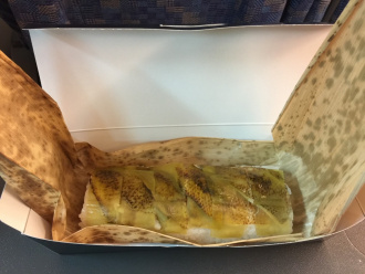 筆者はのどぐろを何度も食したわけではなく、地元ではほんの2回だけ。富山の寿司屋(最後の1貫でした)、金沢の片町の割烹で焼き魚、いずれもほんの一口でした。後ろ髪をひかれつつ、金沢から帰路につくとき、駅でみつけました!炙りのどぐろの棒寿司、ひとつ1,600円です。家に持ち帰るのも待ちきれず、帰りの列車でぺろりと食べてしまいました。のどぐろは肉厚ではありませんが、炙っているので香ばしく冷めても美味。また表面にはうっすら昆布が乗っているのですが、昆布がまろやかな味わいにしてくれます。のどぐろだけを食べるとかなりしっかりとした脂ののった風味を楽しめます。列車の中でしたのでビール片手にいただきましたが、日本酒のほうがお似合いですね。金沢は駅弁も充実していて、香箱蟹や甘えび、金沢牛のお弁当など美味しそうなものがいっぱい。また、季節を変えて金沢を訪れたいと思いました。