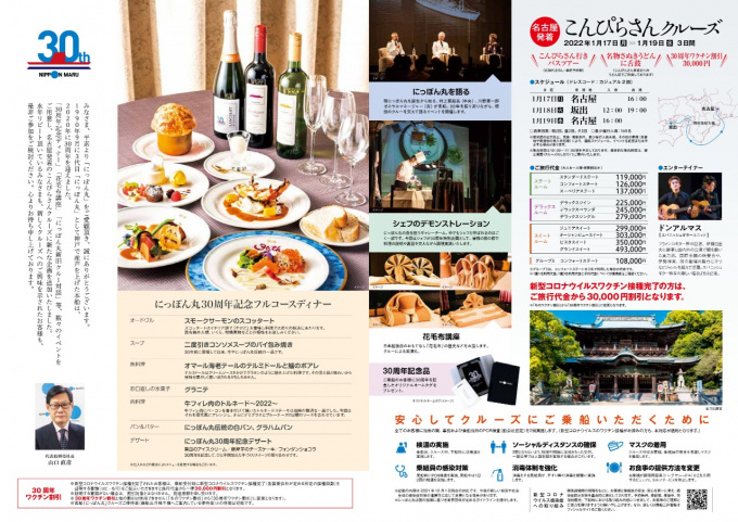 2021年10月に実施した横浜発着のにっぽん丸30周年記念クルーズは好評のうちに終了しました。他の港からの発着を熱望するファンのために2月10日からは神戸発着にて同クルーズを発表、瞬く間にほぼ完売とこちらも好評です。