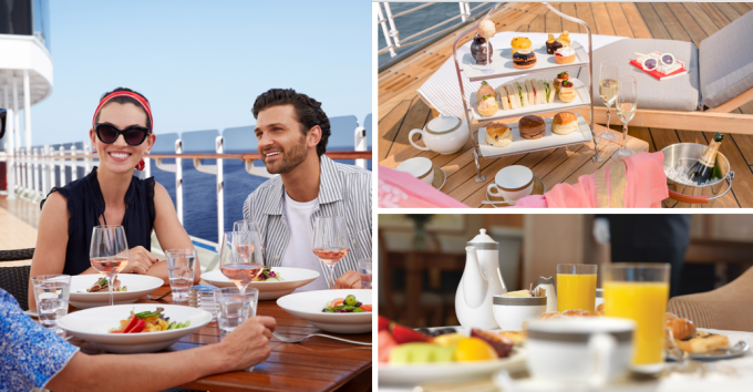 アフターヌーン・ティータイムはクイーンズ・ルーム(デッキ2)にお出かけしなくても、クイーンズ・グリルでもご提供、クルーズの後半に1度だけガーデン・ラウンジ(デッキ9)で実施するローラン・ペリエ シャンパン アフタヌーン・ティー(別料金/要予約)をお部屋でお楽しみいただくこともできます。