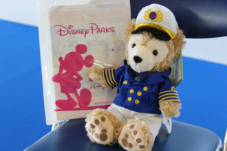 ステージ上の椅子にちょこんと座っているのはディズニー・クルーズライン限定のコスチュームを着けたダッフィー。乗船したらすぐに買わないと売り切れてしまうのだそうです。その他にもディズニー・ファン延髄の情報がいろいろ…。