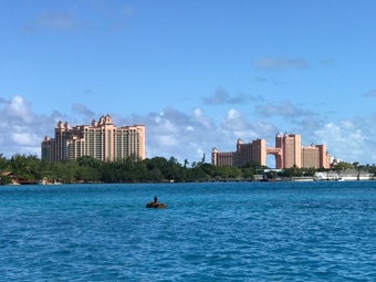 港からは古代都市アトランティスをモデルとして造られた高級リゾートホテル「アトランティス パラダイス アイランド」が見えます。