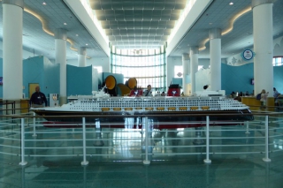 手続きが終わったら、港で是非撮ってほしい写真が2枚あって、1枚目は中央にあるディズニークルーズの模型。