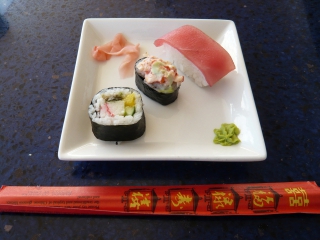 朝はお味噌汁、昼はロブスターの巻き寿司とマグロの握り寿司がありました。