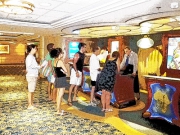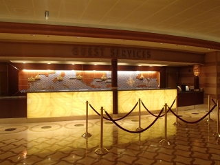 ディズニー・ドリーム号のフロント(ゲストサービス)は、様々な相談や問い合わせに来るお客様で一日中賑やかな場所。