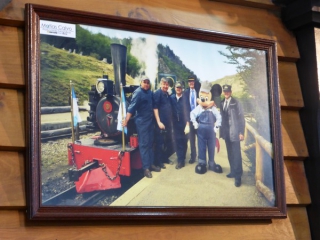 船に乗る前に、ウシュアイアの町の名物となっている南米最南端の観光列車、地の果て号に乗ろうと駅に行きましたら、駅構内の壁にかかっていた写真にミッキーが写っていました!