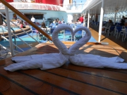 - 感謝祭(11月の第4木曜日)の日には感謝祭のごちそうが振るまわれ、ミッキーマウス、ミニーマウスと仲間たちは伝統的な感謝祭の衣装で登場します。客室のターンダウンサービスには七面鳥のタオルアートが置かれるという凝りよう。また、巨大なファンネルビジョンのLEDスクリーンではNFLフットボールの試合が生中継されます。