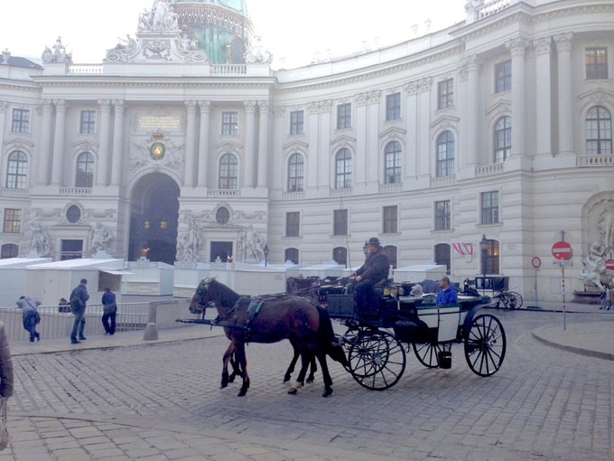 王宮の外側には、現在もフィアカー(観光馬車)がお客様を乗せるために待機しています。