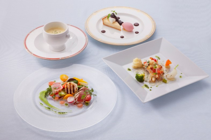 船内ではフランス料理のランチコースをお楽しみいただきます。