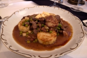 やわらかく煮込んだ牛肉にフォワグラのソテーが添えられた