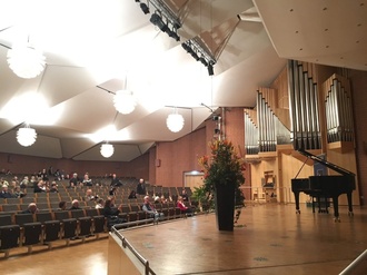 このツアーの一番のみどころは、フライブルク音楽大学のこじんまりとしたホールで