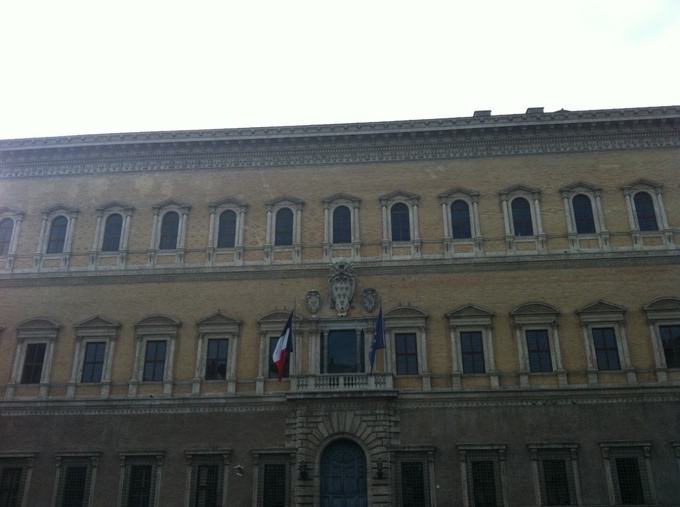 第2幕の舞台、ファルネーゼ宮殿は、名門貴族の出身でローマ教皇にまで出世したアレッサンドロ・ファルネーゼの住まいとして、16世紀に建造されました。あのミケランジェロも一部の設計に関わった、ローマを代表する建築物の一つですが、現在はフランス大使館として使われており、中に入ることはできません。