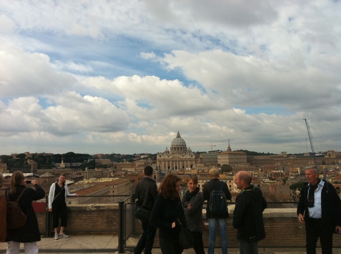 とはいえ、このテラスからのぞむローマの街のパノラマは、それだけでも来る価値があります。空を刺すようにそびえるヴァチカンの聖ピエトロ寺院をはじめ、ローマの中心部が一望できる、絶好のスポットです。