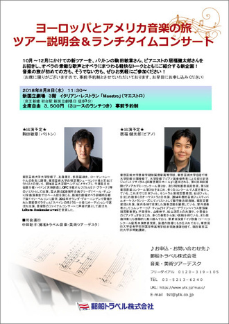 8月8日(水)東京開催★10月~12月にかけての音楽の旅 ツアー説明会&ランチタイムコンサート