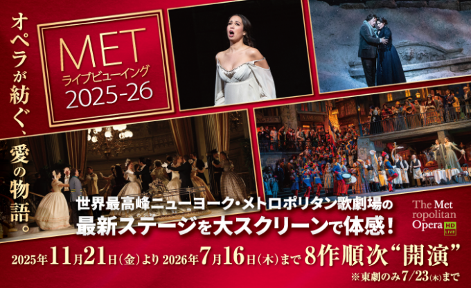 MET最新シーズンが今秋より現地で開幕となり、日本では、2025年11月21日(金)より、東劇・新宿ピカデリーほか全国の映画館にて『METライブビューイング2025‐26シーズン』の上映がスタートいたします!