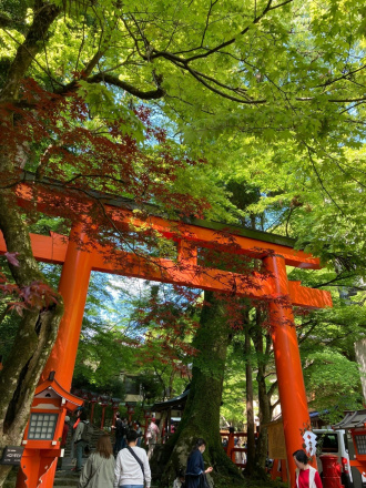 現在放映中の大河ドラマ「鎌倉殿の13人」に出てくる源義経が修行した山なのでどんなものかとの興味もあり、強力なパワースポットでもあることも背中を押しました。ほんの少し鞍馬寺を見るつもりが所々にある、あと○○mの表示に導かれて奥へ奥へと進んでしまい、引き返すも地獄のため、ええいっ!とばかりと山越えして貴船神社までの道のりを歩く羽目に。コロナ禍中の運動不足で息も絶え絶え、汗だくになりつつも見事な緑に癒されながら赤い鳥居の貴船神社までたどり着いた時は達成感でいっぱい!
