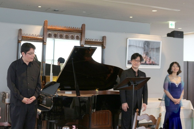 バリトンの駒田敏章さん、ピアノの居福健太郎さん、ソプラノの砂田愛梨さんによる演奏と笑いを誘う軽妙なトーク、そしてコースランチをお楽しみいただきつつ、秋~冬のヨーロッパとアメリカの音楽の旅をご案内した今回の企画。